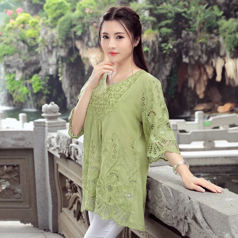 2020 Casual Summer Women Blouses Vintage Embroidery Blouse Loose Floral Boho Tops Womens Clothing P