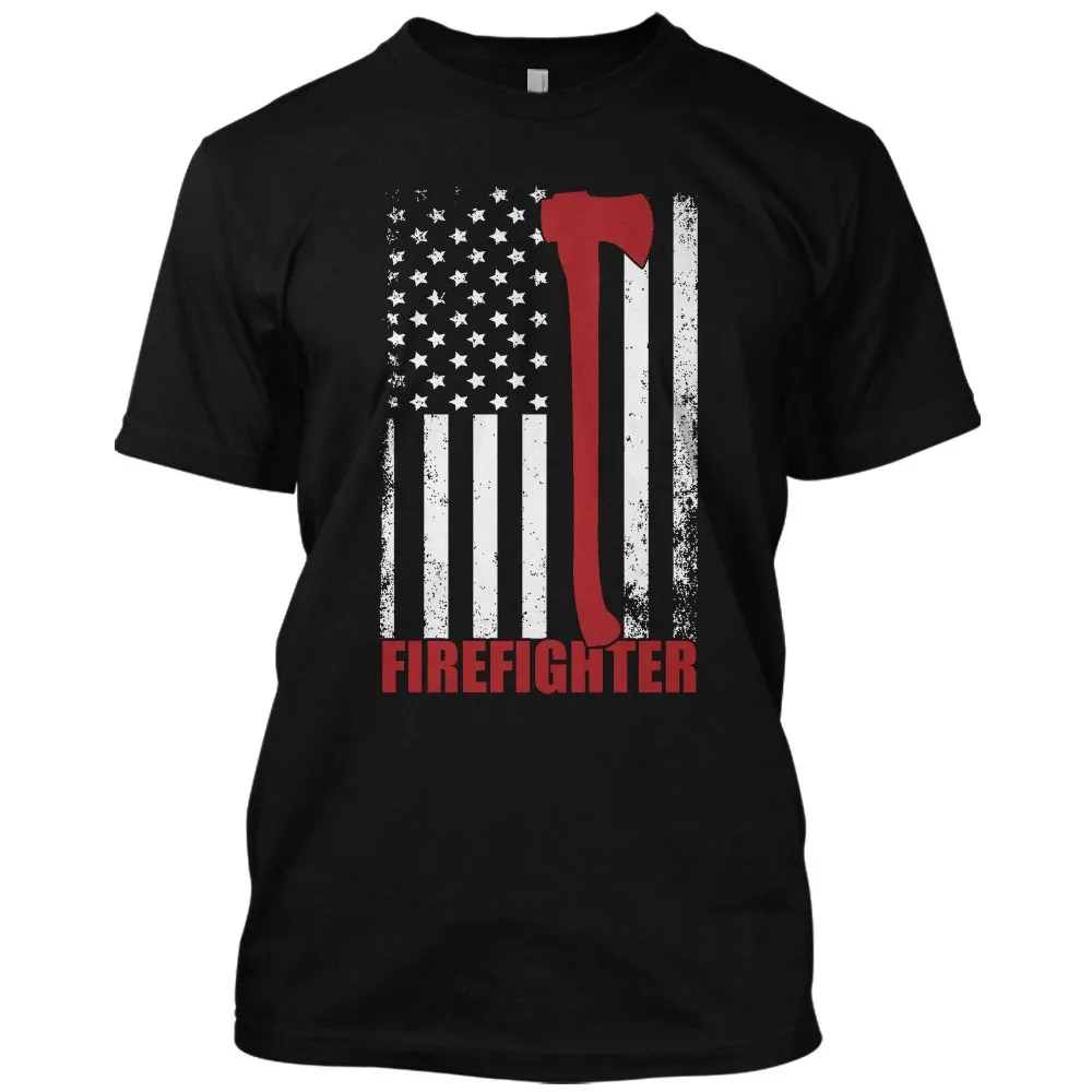 Firefighter Thin Line Us Flag Axe Fire Department Patriotic T Shirt Graphic Tee 2019 Brand Clothing