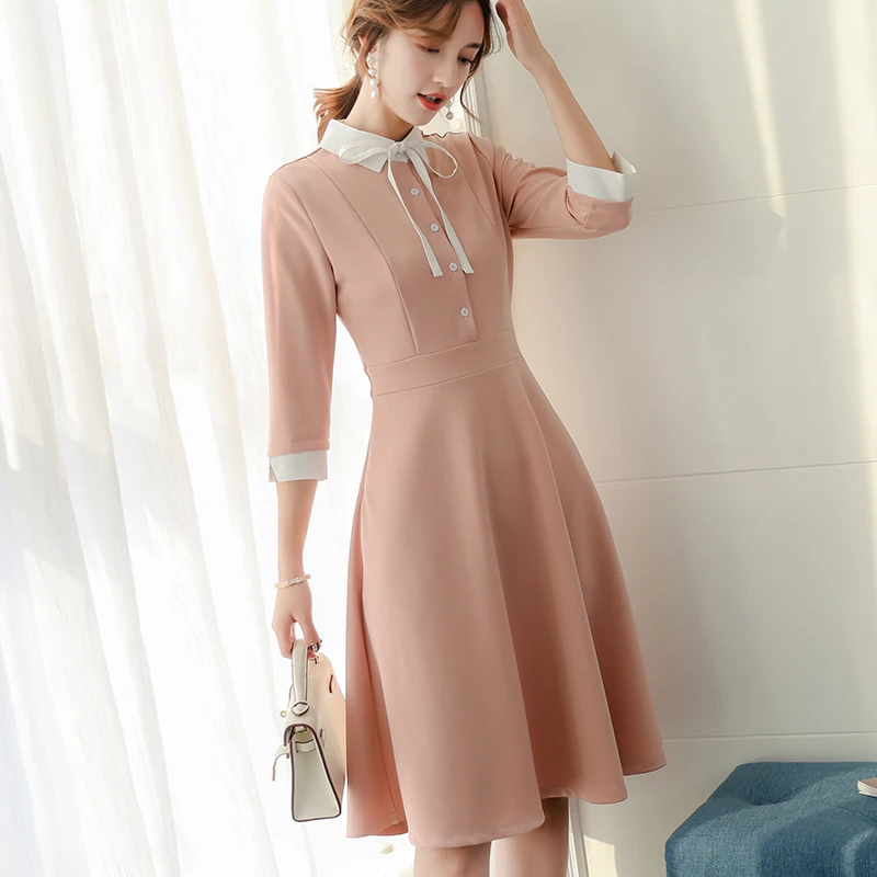 REVIEW TOP SELLER Dress Women Solid Bow Sweet Pink Kawaii Simple A-Line Elegant All-match Leisure Female Korean Style