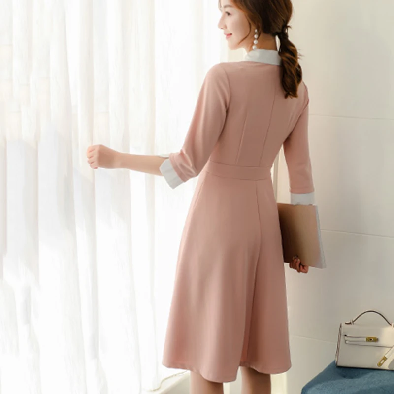 Dress Women Solid Bow Sweet Pink Kawaii Simple A-Line Elegant All-match Leisure Female Korean Style