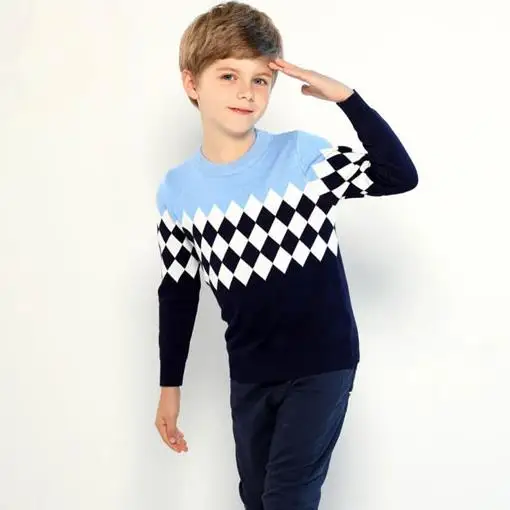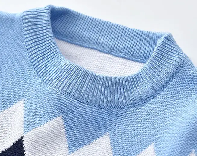 2-9yrs Baby Boys sweaters winter double layer kids clothes pullovers geometric thick chilren clothi