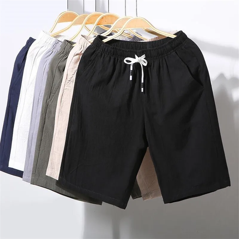 Men Shorts Slim Fit 2019 Summer Cotton Linen Knee Length Breathable Male Clothing Pure Straight Sho